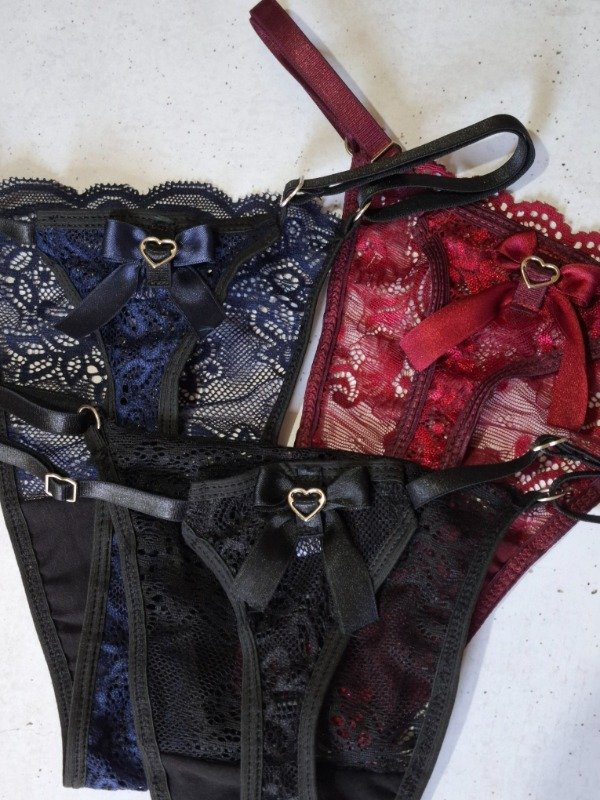 Less del conjunto INTIMY. Regulable de puntilla con detalles en la parte de atras con moño y acceserio de corazon